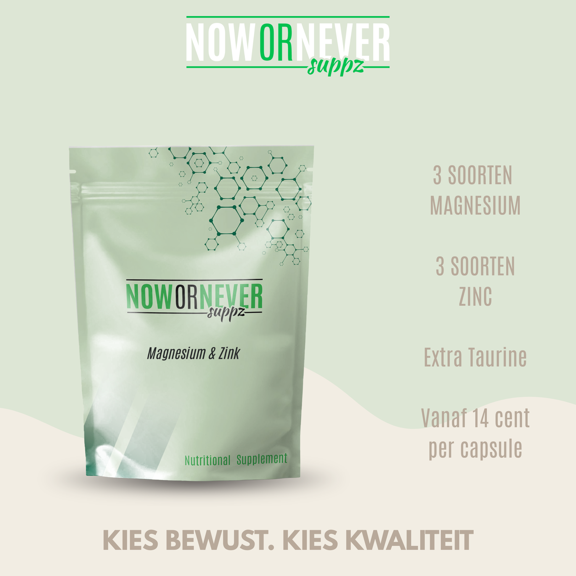 Onze Zink & Magnesium capsules bevatten een zorgvuldig samengestelde combinatie van zink, magnesium en taurine die bijdraagt aan de ondersteuning van botten, gewrichten en spieren. Dit supplement is speciaal ontwikkeld om je gezondheid en welzijn een boost te geven of voor mensen die hun botten en gewrichten extra ondersteuning willen geven. Door deze mix kunnen je botten en gewrichten beter functioneren en behoud je mobiliteit en flexibiliteit.